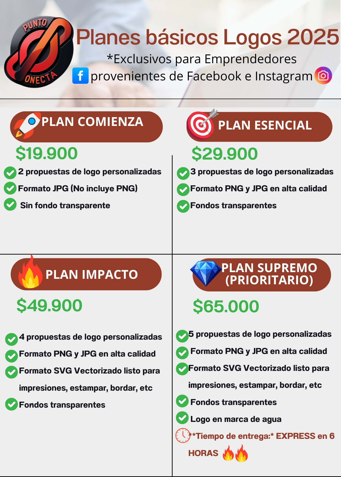 Nuestros planes de logos están pensados para impulsar tu identidad desde cero. Calidad, rapidez y creatividad a tu alcance.